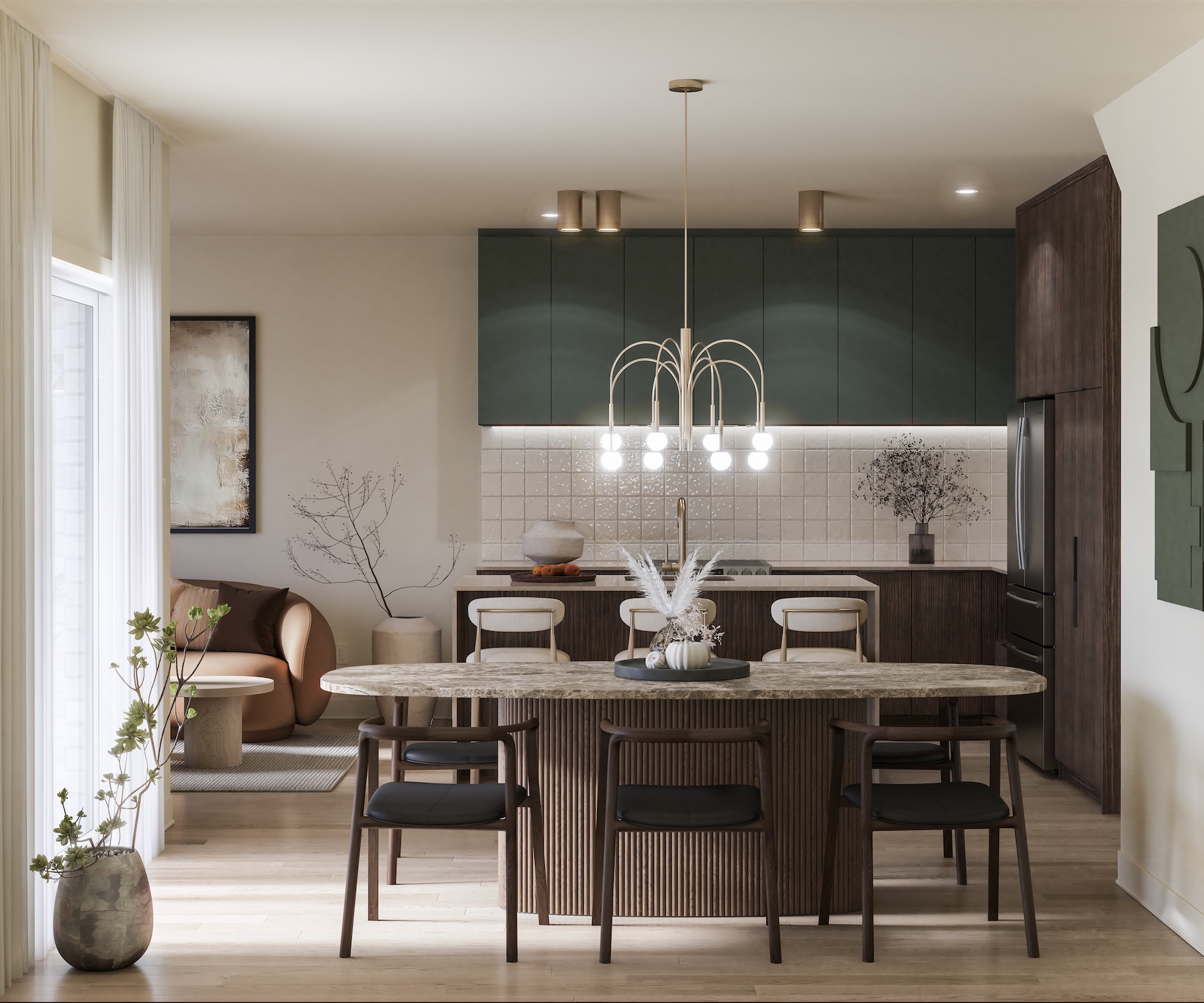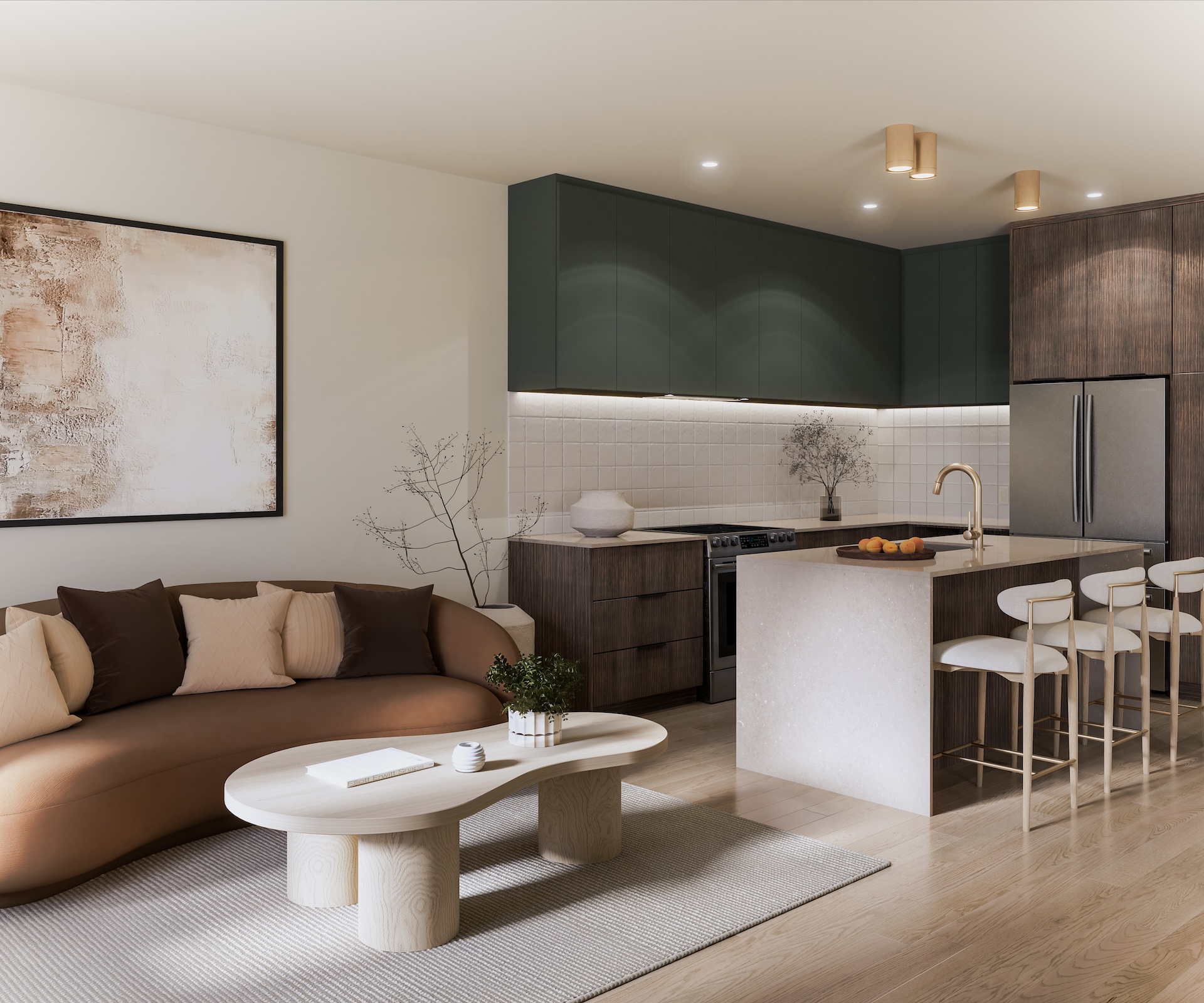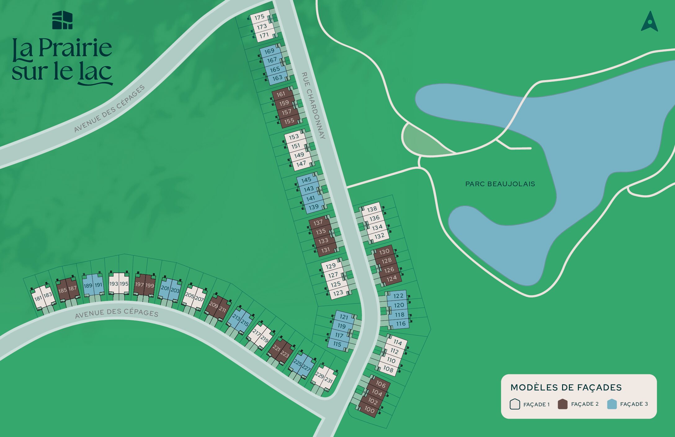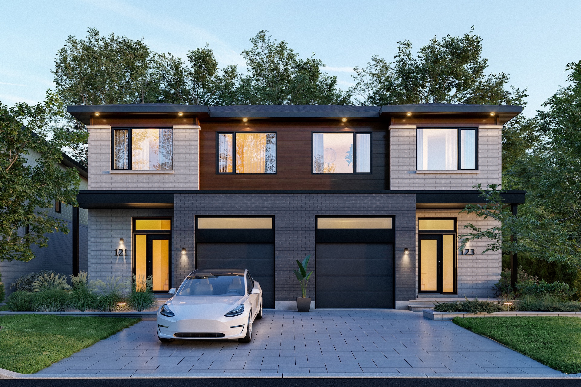 The semi-detached homes at La Prairie sur le Lac can accommodate up to five bedrooms and feature high-quality materials, including hardwood floors and quartz countertops. They are distinguished by their elegant architecture, windows on three sides of the home, and bright living areas with well-balanced proportions. Several architectural styles and facades are available depending on the lot, as well as a wide range of interior configurations and customization options.