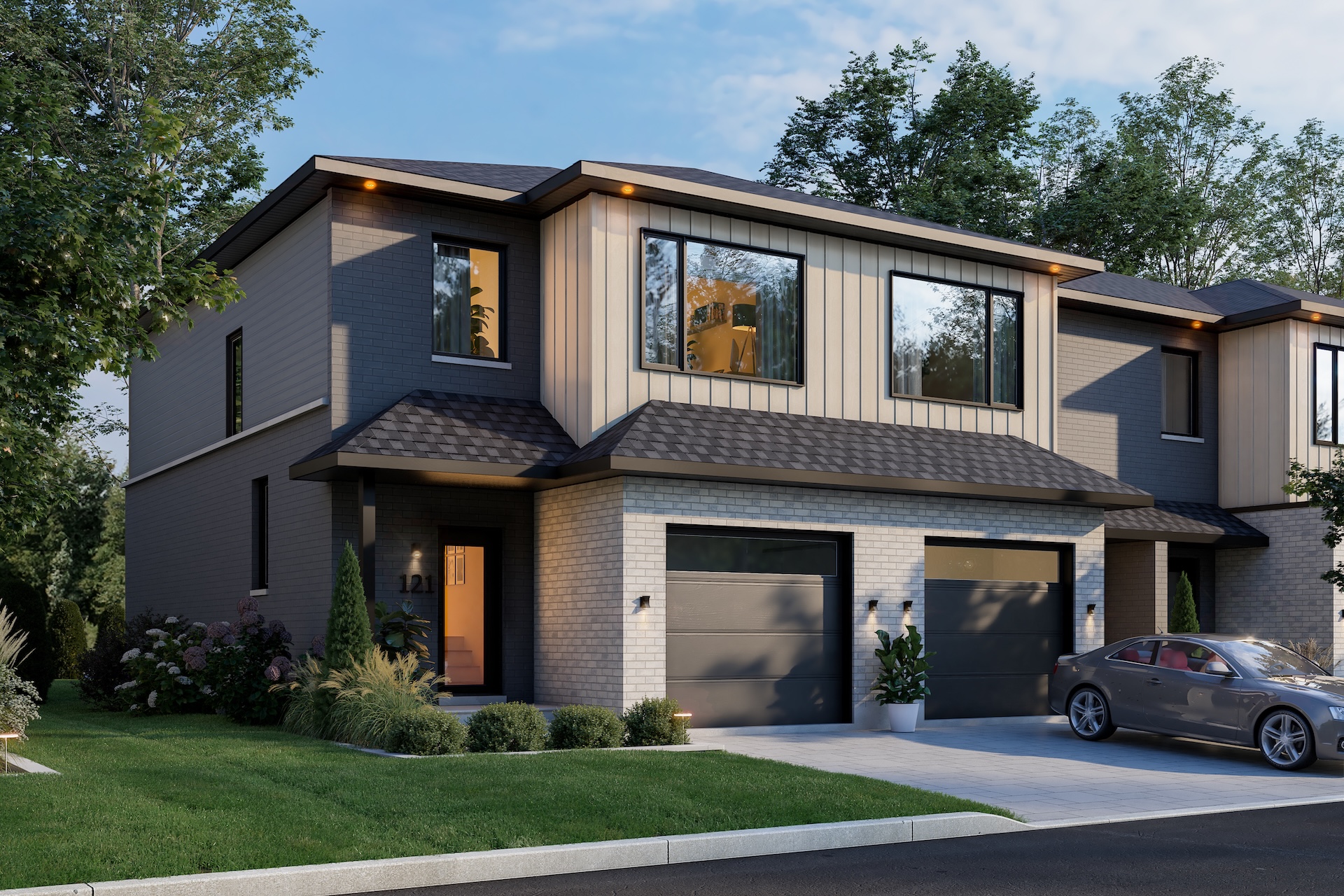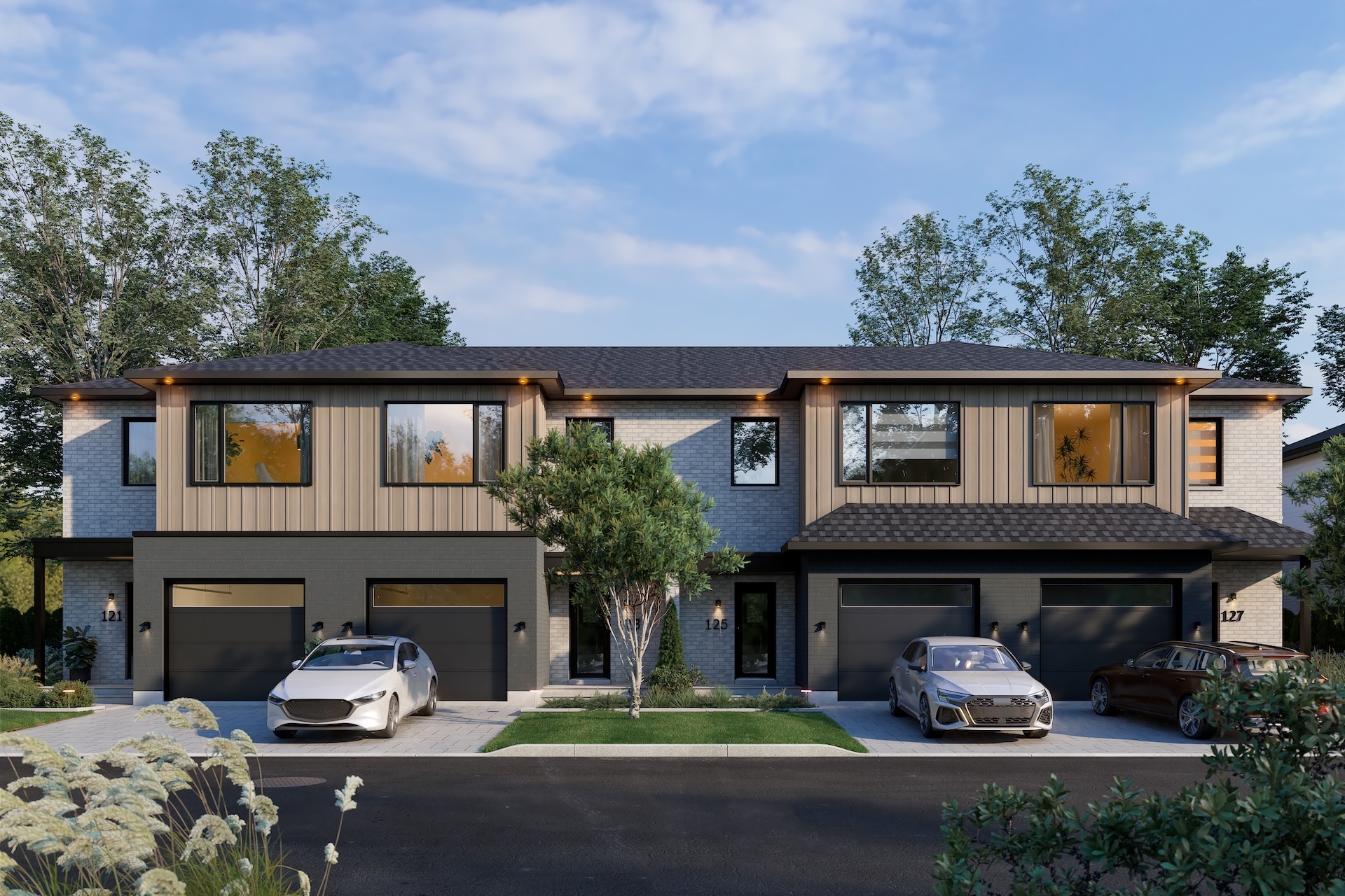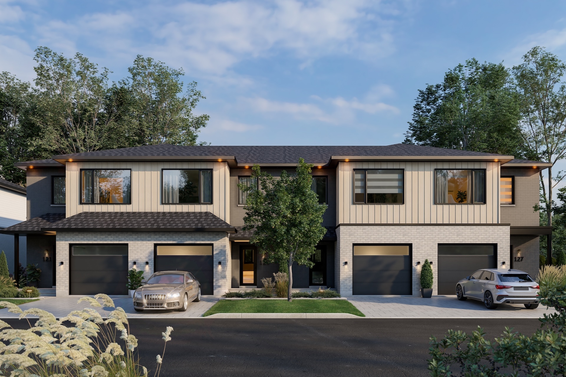 Each townhouse includes a garage, air conditioning, and an air exchanger. The choice of facades varies depending on the lot selected. Some units are adjacent to or face the park.