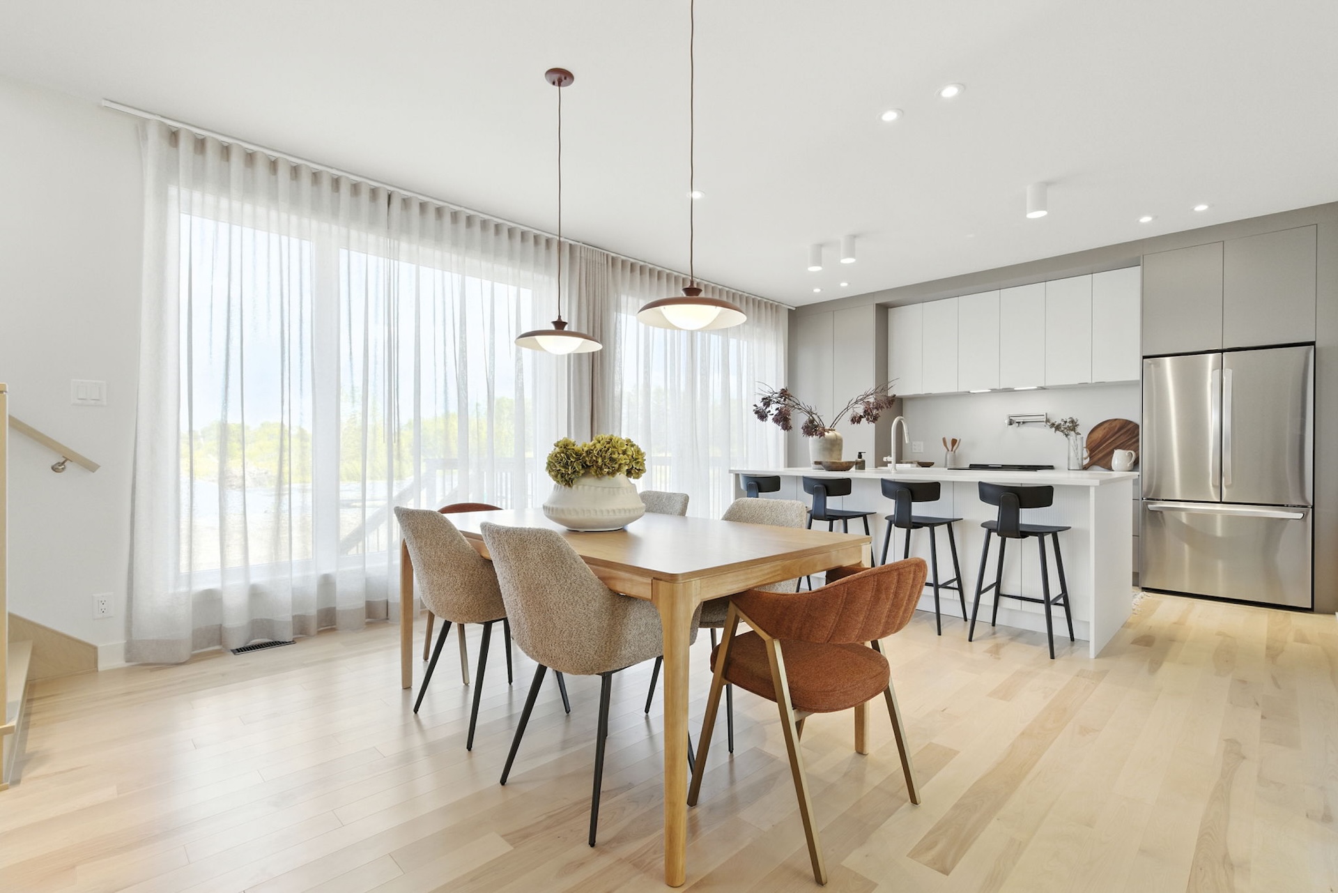 The neighborhood offers a network of walking trails totaling approximately 1.7 km, laid out along the riverbanks and preserved natural areas. These trails have been designed to blend harmoniously into the landscape, highlighting the natural features that characterize the area. The trails offer residents privileged access to nature, directly from their neighborhood. They invite people to get active, relax, and enjoy the seasons in a peaceful and preserved environment.