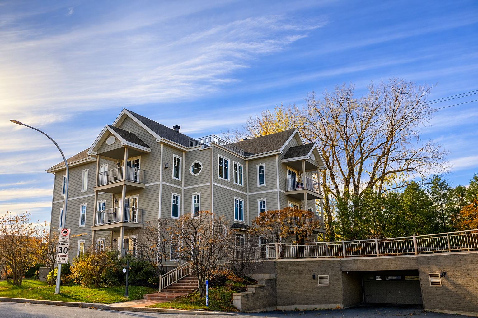 This project was built on a former mini-golf course, which was transformed into a distinctive residential complex. Two buildings with underground parking house 12 high-end condos offering views of the St. Lawrence River. The complex was completed with a carefully landscaped interior courtyard, creating a pleasant and inviting outdoor space for residents.