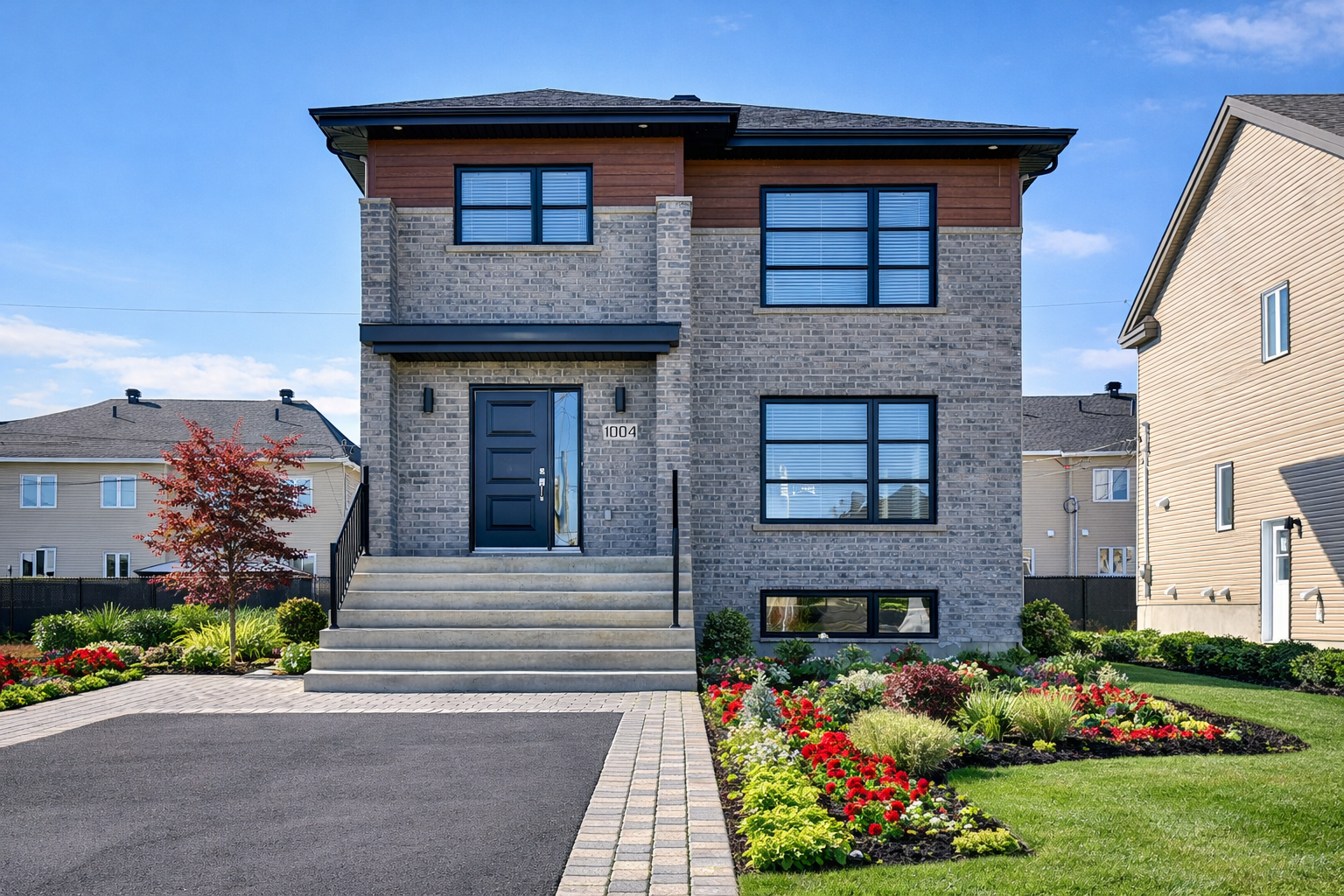 This project stands out for its landscaped green spaces and parks. A bike path running alongside a stream connects the residential area to commercial zones and the nearby golf course. Habitations Pilon first built 21 fully customized single-family homes, then added 10 semi-detached homes to meet changing market needs. Located on the urban periphery while remaining away from the hustle and bustle of the city center, the neighborhood brings together a variety of residential styles, creating an attractive living environment for a diverse clientele.